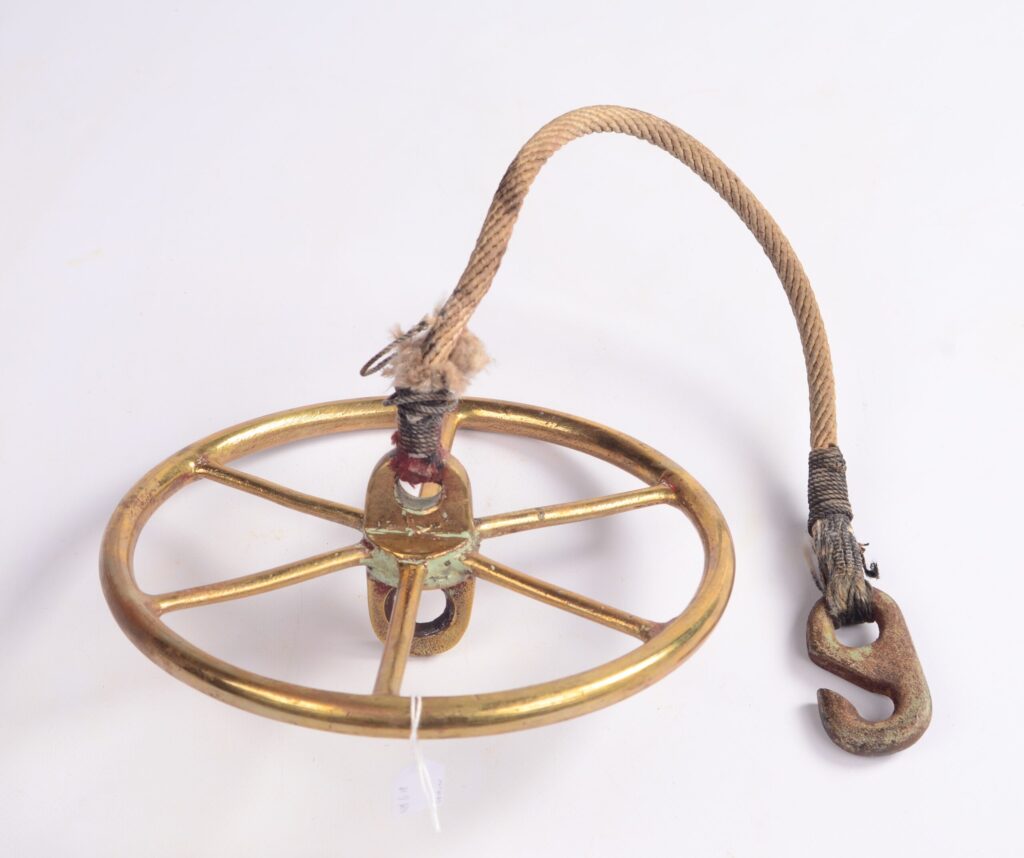 The spoked fly wheel is introduced in 1878 by W. Waring. Subsequently applied in large quantities by Walkers and others. This early hand-made brass item is possible made by Waring.